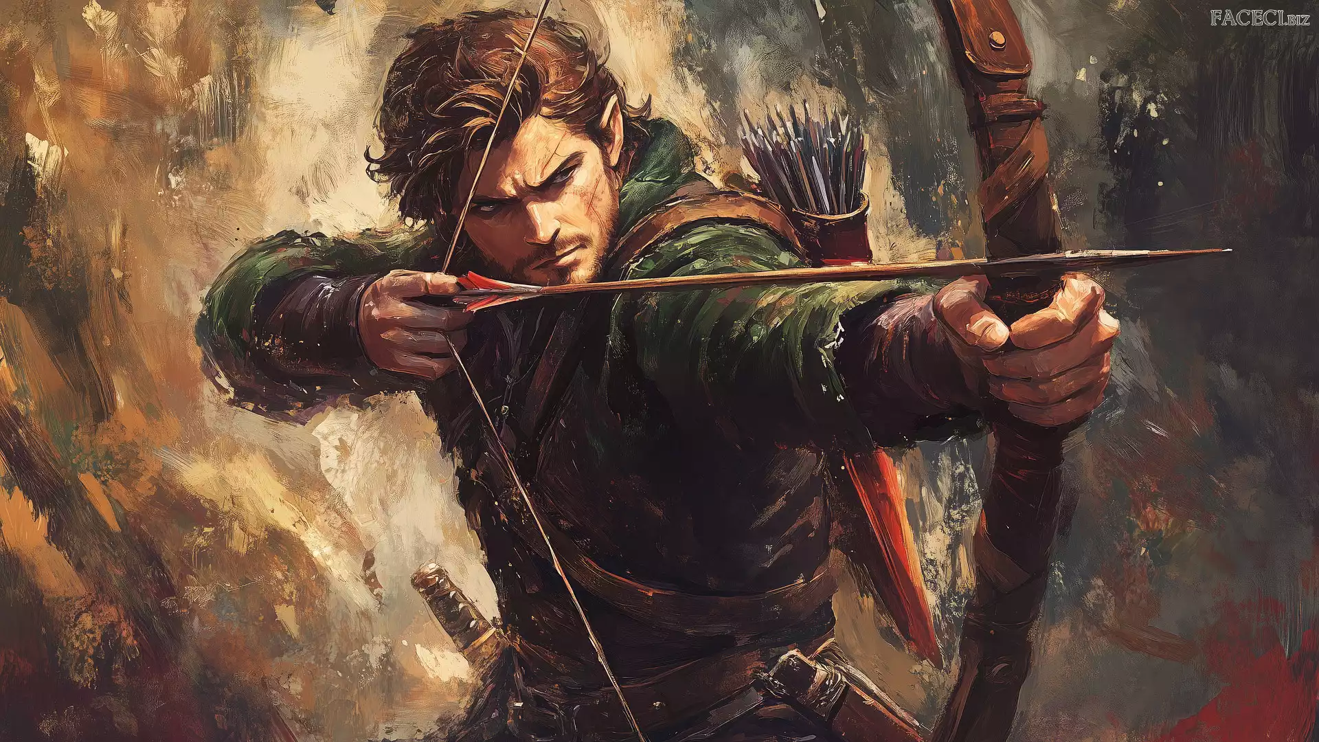 Grafika, Mężczyzna, Strzały, Łuk